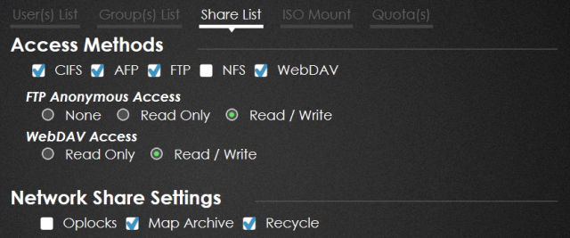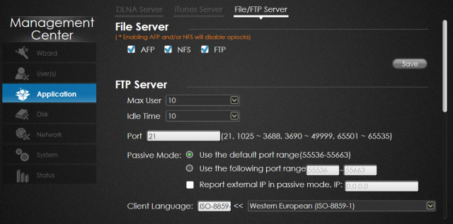 Można także zarządzać dostępem do wybranych usług, jak np do bardzo popularnego FTP. Tak na marginesie, usługa ta jest domyślnie wyłączona, więc warto uruchomić, gdyż daje bardzo fajne możliwości, z resztą jak i inne metody dostępu. NAS może także uruchomić serwer plików FTP.