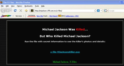 Aby zaciekawić potencjalne ofiary umieszczano na stronach informacje w stylu "Michael Jackson Was Killed. But Who Killed Michael Jackson?" Ostatnie wieści o śmierci Michaela Jacksona", "Michael Jackson został celowo zabili" i inne.