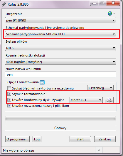 Z pomocą przyjdzie darmowy program Rufus, który w swoich opcjach pozwala na tworzenie takiej pamięci, a przy okazji pozwoli nagrać obraz ISO instalacji systemu Windows na pendrive.