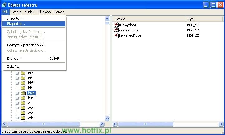 Odszukaj wybrany klucz, kliknij raz na niego, a następnie z menu wybierz Plik => Eksportuj.