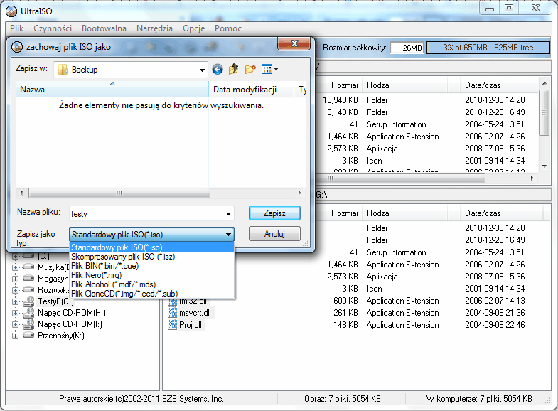 Wybieramy folder do zapisu naszego obrazu oraz rozszerzenie. Domyślnie jest to rozszerzenie .iso, jednak program obsługuje również rozszerzenia: