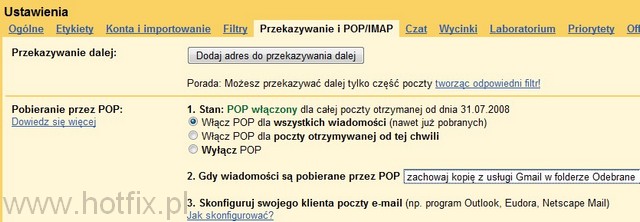 1. Najpierw należy włączyć obsługę POP dla konta Gmail. Musimy zatem wejść w