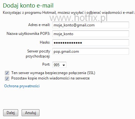 3. Skoro już nasz Gmail jest gotowy do wysyłania kopii zapasowych, należy teraz jeszcze skonfigurować Hotmaila. Klikamy