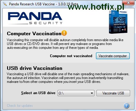 Jeżeli posiadasz zainfekowaną pamięć przenośną: pendrive, MP3 itp, możesz ją wyleczyć darmowym programem Panda USB Vaccine.