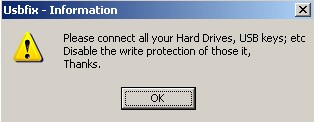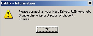 3a. Pojawi się komunikat o podpięcie WSZYSTKICH przenośnych nośników pamięci i odblokowanie na nich funkcji zapisu: