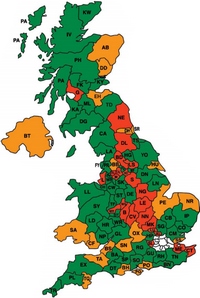 "The 3rd Man", kontrolująca 20% brytyjskich transakcji internetowych szacuje, że w zeszłym roku kwota wszystkich fałszywych operacji opiewała na 500,000,000 funtów brytyjskich. na podstawie tych danych opracowano mapę Wielkiej Brytanii wyszczególniająca kolorem czerwonym rejony, w których płatności "lewymi" kartami mają miejsce najczęściej.