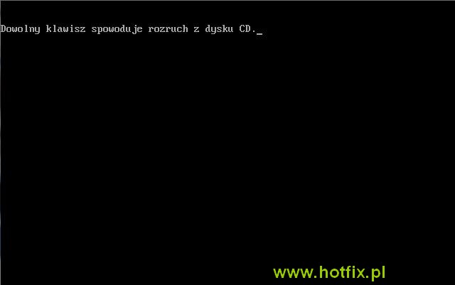 Aby uruchomić środowisko WinPE, bootujemy (uruchamiamy) komputer z płyty instalacyjnej systemu Windows Vista. Pierwszym etapem bootowania z płyty jest potwierdzenie chęci uruchomienia z niej komputera.