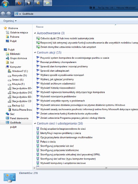 3. Po zmianie nazwy na GodMode.{ED7BA470-8E54-465E-825C-99712043E01C} zostanie utworzony nasz folder, w którym znajdują się skróty do, śmiem powiedzieć wszystkich ustawień systemu.