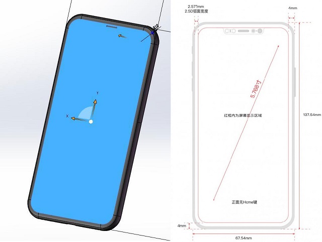Ponad to można zauważyć, że wszystkie czujniki znajdujące się w górnej części smartfona zostaną przeniesione pod ekran. Wg informacji na obrazkach urządzenia ma wymiary 137.54x67.54mm co sprawia, że nowy iPhone 8 będzie miał przekątną ekranu 5.7 cala.