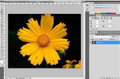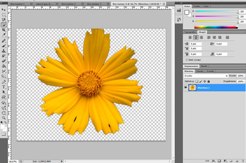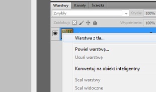 1. By uzyskać efekt przezroczystości tła musimy najpierw odblokować warstwę tła. Klikamy prawym przyciskiem myszy na naszą warstwę i wybieramy z menu opcję "warstwa z tła"