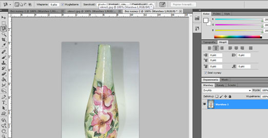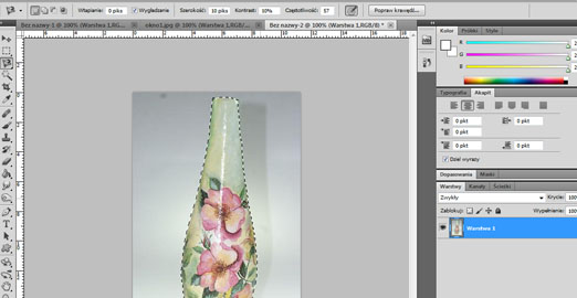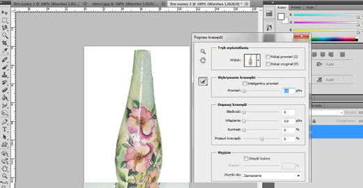 4. Jak widać zaznaczyliśmy cały wazon. Niestety krawędzie sa czasem za ostre. Minimalnie możemy zmienić to opcją "Popraw krawędź"