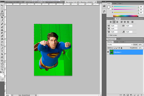 7. Teraz wystarczy wybrać z menu "Edycja" opcję "Wyczyść", bądź po prostu nacisnąć przycisk delete na naszej klawiaturze. Oto efekt: