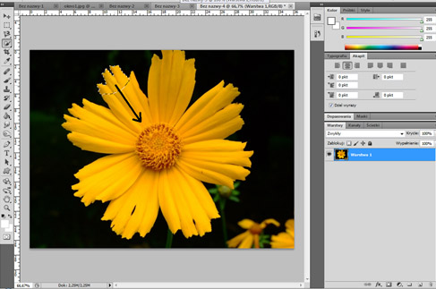 3. Teraz przystępujemy do zaznaczania. Malujemy jak zwykłym pędzlem, przeciągając po całej powierzchnię kwiatka