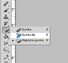 1. Z menu narzędzi wybieramy ikonkę gumki i przytrzymujemy. Po pojawieniu się menu, wybieramy narzędzie "Gumka tła"