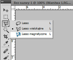 1. Z menu narzędzia wybieramy lasso i przytrzymujemy ikonke. Pojawi nam się takie menu: