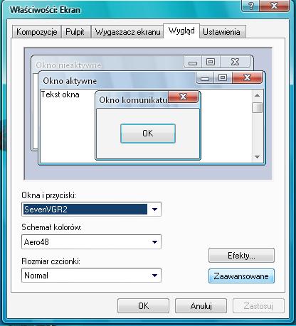 8. Klikamy ppm na pulpicie, wybieramy właściwości, klikamy w zakładkę wygląd, wybieramy nasz motyw i zastosowujemy.